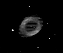 A lot more detail has emerged in M57 itself, and it now stands out nicely from the background. The typical banding from the SAC-8 in hi-res mode is showing up quite a bit now. It will be removed in the next step. Also, note that if