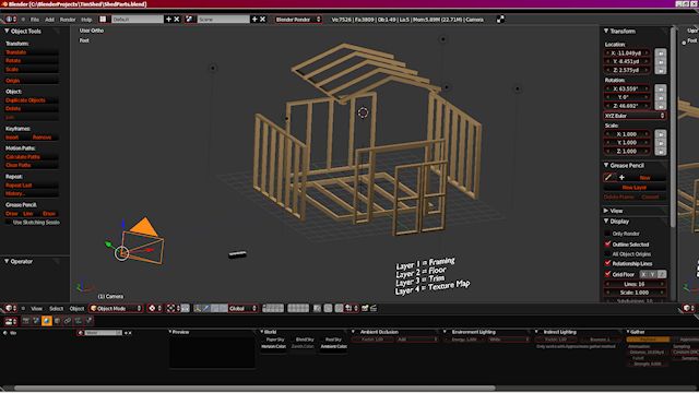 ![]() I constructed the model of the UV Laser below using Punch! ViaCAD 2D/3D V9. I just happened to see a boxed version in a local store and was curious as to its 3D functionality, so I purchased it. Thus far, I am very pleased with results. The image of the UV Laser below was modeled entirely in ViaCAD 2D/3D V9. I then imported the model to Blender 2.74 for rendering. Please note that I did NOT use Blender to modify the base model in any way. Once the model was completed in ViaCAD 2D/3D V9, I simply exported from VIACAD and imported the model to Blender 2.74, assigned materials to the model, and rendered it. In short, I really liked the end result. I find that I can create certain base 3D models very quickly in ViaCAD. I must say that I am very impressed with the 3D functionality of ViaCAD 2D/3D V9 at its relatively low cost. As a result, I also purchased ViaCAD Pro v9, which is working well for me thus far and includes more realistic rendering capabilites (among other things) than ViaCAD 2D/3D. Finally, please note that I have no business association with Punch! or ViaCAD. I am just an end-user. However, I felt compelled to write something positive about it here because I was surprized by the functionality of VIACAD 2D/3D V9 at what I consider to be a very reasonable price. ![]() Below shows prototyping the framing of a shed we built. Blender was used to design the shed before building. Blender can be very useful for so many purposes... ![]() Finally, I created the 3D Home