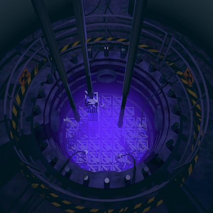 rendered in Blender 2.74, showing the Cerenkov radiation glow.