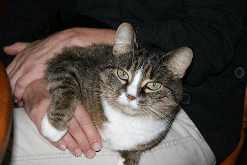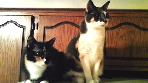 shown below. "Leah" is the white tortie, and "Neutron" is the dark